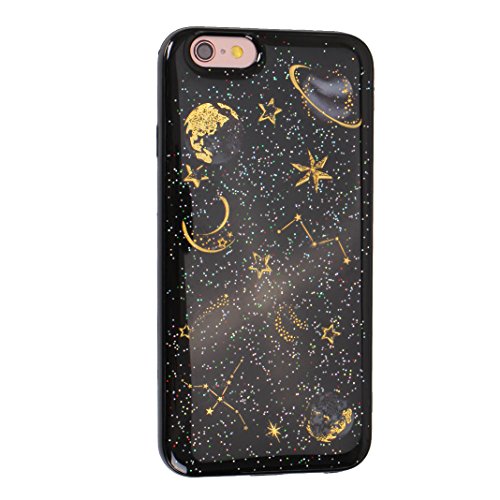Cover Bling per iPhone 6 / 6S, Asnlove Moda Paillette Brillare Caso TPU Silicone Gel Custodia Gomma Morbida Cassa Brillante Elegante Case Pianeta Cielo Stellato Costellazione, Nero
