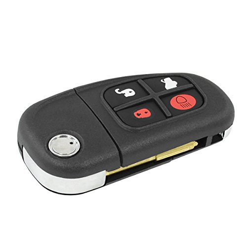 Cover Chiave Guscio Telecomando Completo Nero 4 Tasti e Lama Pieghevole Scatto Jaguar X-Type S-Type XJ8 XJR CHIAVIT Ricambi Scocca Chiavi Auto Ricambio Logo Senza Elettronica e Transponder