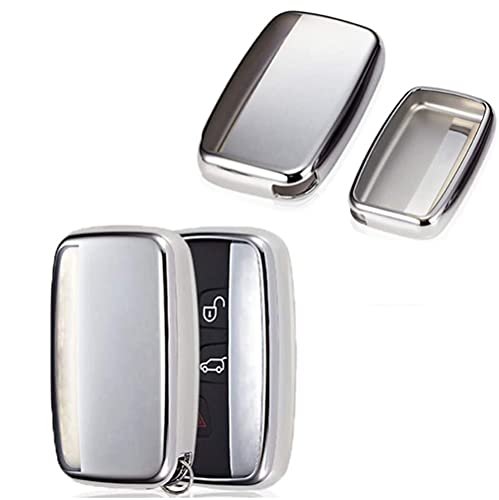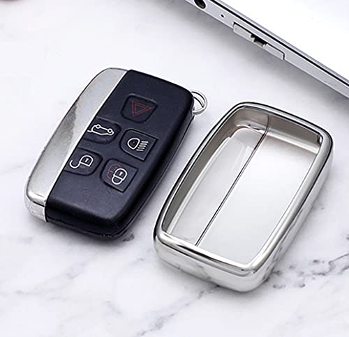 Cover per chiave auto a 5 pulsanti compatibile con Land Rover Range Sport Evoque Aurora Jaguar XF XJ XJL XEL XFL F-pace, custodia protettiva in morbido TPU (argento)