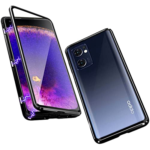 Cover Compatibile con Oppo Find X5 Lite, Adsorbimento Magnetico Custodia 360 Protezione Copertura Frontale Posteriore Vetro Temperato Alluminio Telaio Case, Nero