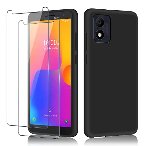Cover Compatibile con Alcatel 1B 2022 e 2 pezzi vetro temperato,Custodia per telefono in silicone, Custodia protettiva in TPU tinta unita, Leggera Antiurto Antiscivolo - Nera