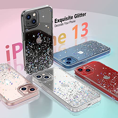 【Custodia per telefono iPhone 13 scintillante】 Il retro del PC trasparente e rigido con paillettes glitter mostra il colore dell'iPhone 13 e lo rende più scintillante e brillante. Il motivo a stella emette diversi colori di luce a seconda dell'angolo di luce e non si preoccupa che si spenga