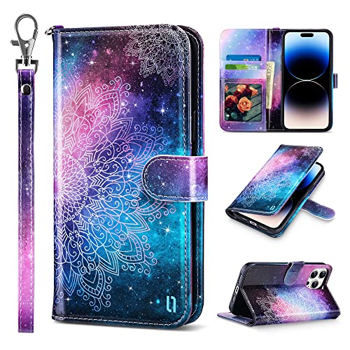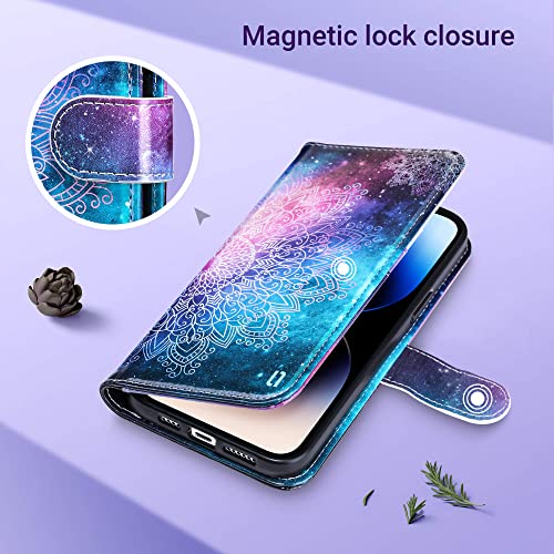 ULAK Cover Compatibile con Apple iPhone 14 Pro Portafoglio, Colorata Pelle Libro Magnetica Cavalletto Custodia iPhone 14 Pro con Porta Carte per Ragazze Donna (Mandala Fiori)
