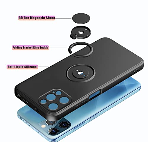 Cover Compatibile con Apple iPhone 13 Pro Max Cover Silicone Liquido, Cover iPhone 13 Pro Max con Anello Viola, Custodia iPhone 13 Pro Max Case Morbido (Nero, iPhone 13 Pro Max)
