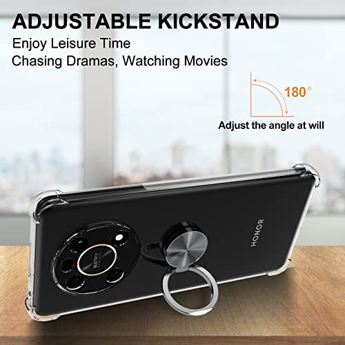 Cover Compatibile con HONOR Magic 4 Lite 5G / 4G, Custodia Trasparente Silicone con Anello Ruotabile Cavalletto, Quattro Angoli Anti-Caduta Crystal Clear Case - Anello Argento