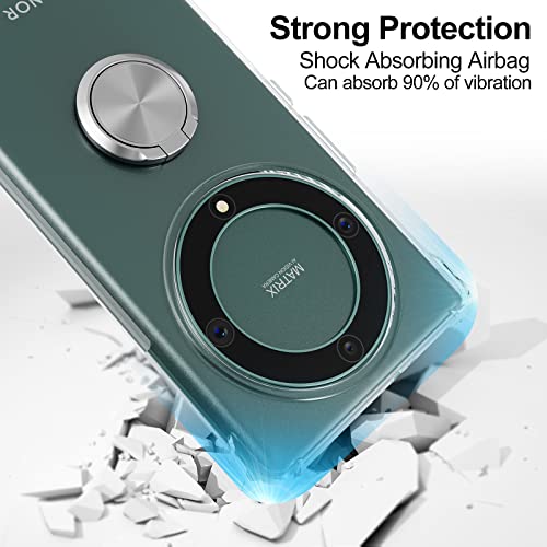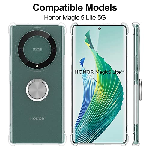 Cover Compatibile con Honor Magic 5 Lite 5G, Custodia Trasparente Silicone con Anello Ruotabile Cavalletto, Quattro Angoli Anti-Caduta Crystal Clear Case - Anello Argento