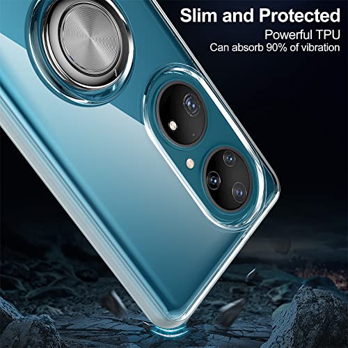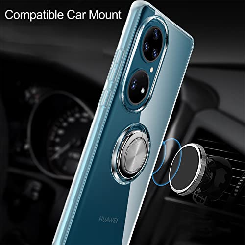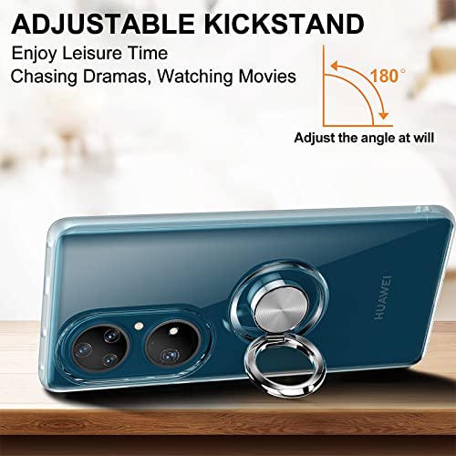 Cover Compatibile con Huawei P50 Pro, Custodia Trasparente Silicone con Anello Ruotabile Cavalletto Antiurto Crystal Clear Case, Chiaro