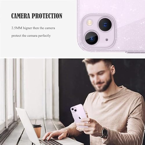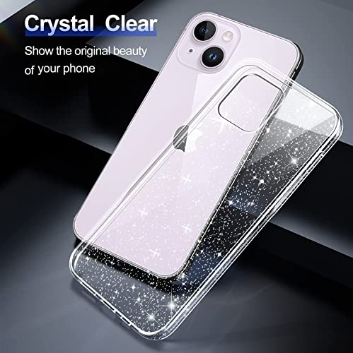 Cover Compatibile con iPhone 14 Plus Custodia Glitter, 2 Pezzi Pellicola Protettiva in Vetro Temperato & 2 Pezzi Pellicola Fotocamera, Brillantini Morbido TPU Protezione Trasparente Case