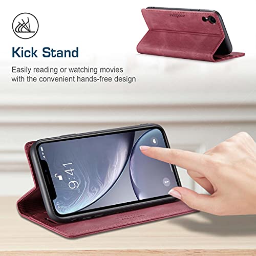 Cover Compatibile con iPhone XR,Custodia a Portafoglio Silicone PU Case Magnetica in Pelle con Slot per Schede di Blocco RFID,Rosso