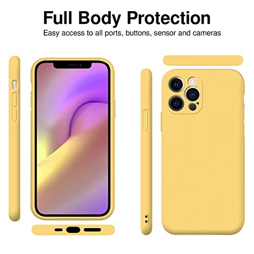 TBOC Cover Compatibile con iPhone 12 PRO [6.1"] Custodia Rigida [Gialla] Silicone Liquido [Sensazione Morbida] Fodera Interna Microfibra [Protegge Fotocamera] Antiscivole Resistente Graffi