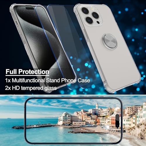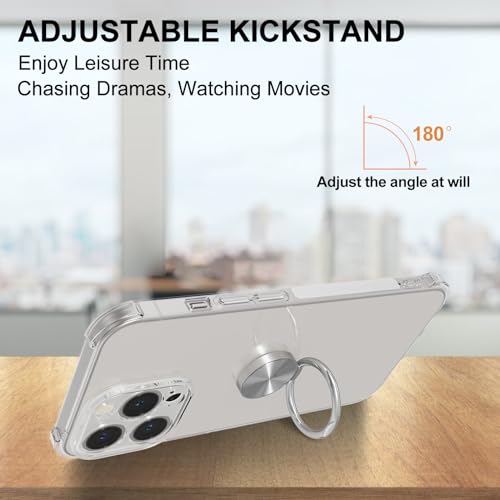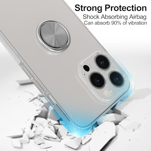 Cover Compatibile con iPhone 15 Pro, Custodia Trasparente Silicone con Anello Ruotabile Cavalletto, Quattro Angoli Anti-Caduta Crystal Clear Case - Anello Argento