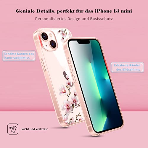 Cover Compatibile con iPhone 13 Mini 5,4 Pollici, Custodia ultra flessibile trasparente con motivo fiore di pesco