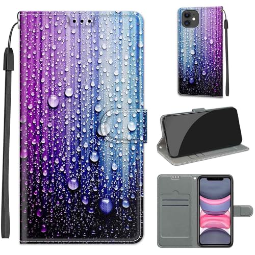 Cover Compatibile con iPhone 11, Premium Pelle PU Portafoglio Flip Libro Custodia per iPhone 11 [Protezione Completa] - gocce d'acqua