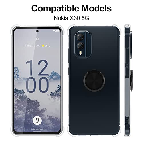 Cover Compatibile con Nokia X30 5G, Custodia Trasparente Silicone con Anello Ruotabile Cavalletto, Quattro Angoli Anti-Caduta Crystal Clear Case - Anello Nero