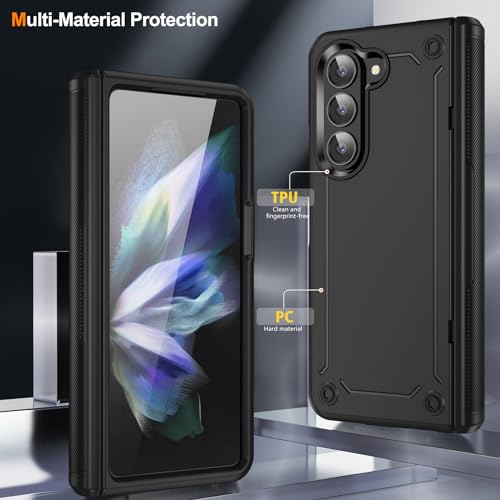 Cover Compatibile con Samsung Galaxy Z Fold 5 5G, Custodia con Protezione Della Cerniera e Protezione Dello Schermo, Case Ibrida Rigida in PC Smerigliato - Nero