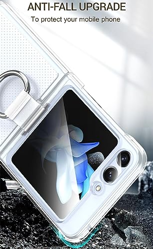 Cover Compatibile con Samsung Galaxy Z Flip 5, Custodia con Schermo Esterno Vetro temperato e Anello Anti Giallo PC Case, Blu