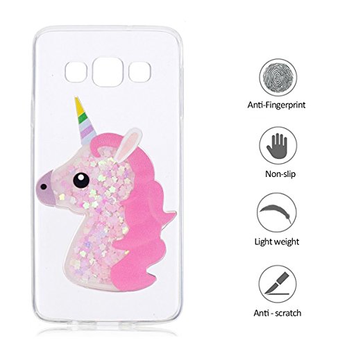 Cover Compatibile con Samsung Galaxy A5 2017 Glitter Custodia, Brillantini Trasparente Creativo 3D Unicorno Silicone Gel Morbida TPU Liquido Sabbie Mobili Bling Sparkle Protezione Bumper - Rosa
