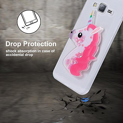 Cover Compatibile con Samsung Galaxy J310 J3 2016 Glitter Custodia, Brillantini Trasparente Creativo 3D Unicorno Silicone Gel Morbida TPU Liquido Sabbie Mobili Bling Sparkle Protezione Bumper - Rosa