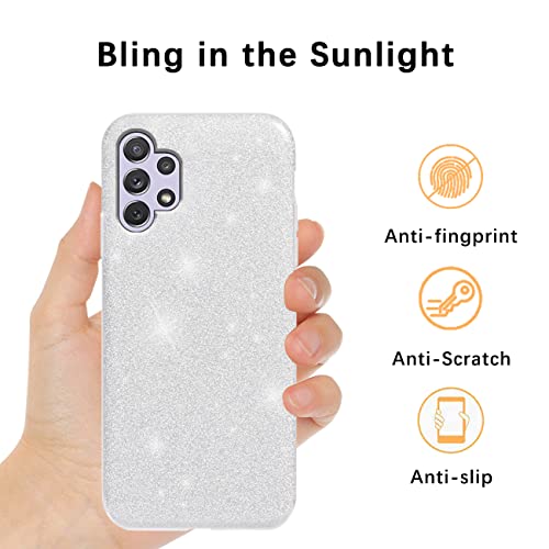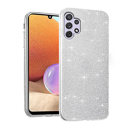 Cover Compatibile con Samsung Galaxy A32 5G Cover Silicone, Cover Samsung A32 5G Glitter Rosa, Custodia Samsung A32 5G Cover Glitter 3 in 1 Case (Argento, Samsung A32 5G)