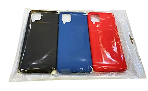 NA 3X Cover Compatibile con Samsung Galaxy A12 / M12, Cover in Silicone Liquido Custodia Simplicity, Custodia Sottile Antiurto in Puro Colore - Nero + Blu + Rosso