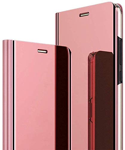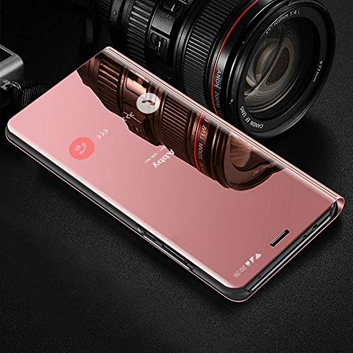 Cover Compatibile Con Samsung Galaxy S8 Specchio Custodia, Intelligente Flip Silicone Clear View Case in Pelle Bumper Folio Protector Copertura Mirror Supporto Cover Shell, Oro Rosa