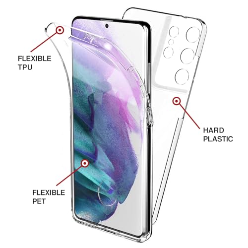 TBOC Cover Compatibile con Samsung Galaxy S21 Ultra-S21 Ultra 5G [6.8"] Custodia [Trasparente] Completa Copertura [Silicone TPU] Protezione Totale [360 Gradi] Full Body Sottile