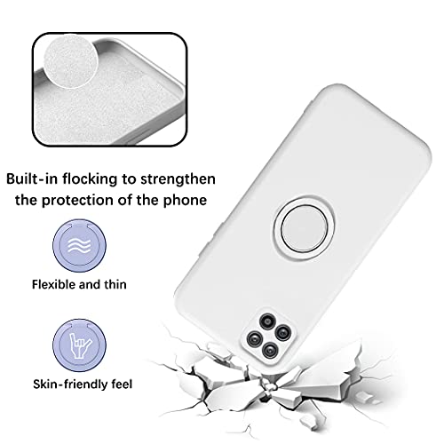 Cover Compatibile con Samsung A22 5G Cover Silicone Liquido, Cover Samsung A22 5G con Anello Viola, Custodia Samsung A22 5G Case Morbido (Bianco, Samsung A22 5G)