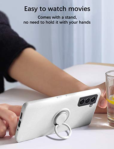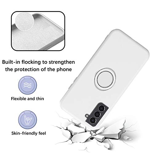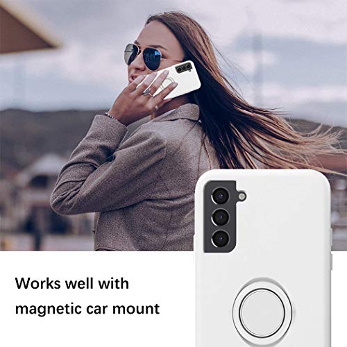 Cover Compatibile con Samsung S21 Plus Cover Silicone Liquido, Cover Samsung S21 Plus con Anello Viola, Custodia Samsung S21 Plus Case Morbido (Samsung S21 Plus, Bianco)