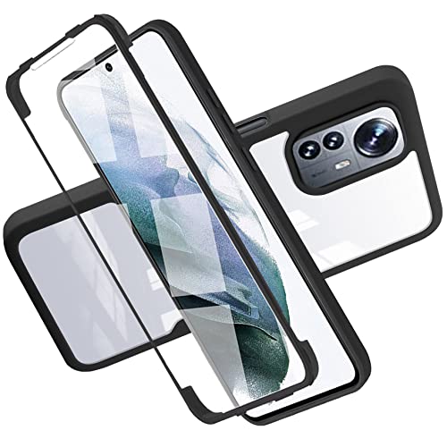 Cover Compatibile con Xiaomi Mi 12 Pro, Custodia 2in1 Dual Layer Ibrida [360°] Full Body Antiurto Protettiva [Silicone TPU Fronte] e [Rigida Plastica Back] caso per Xiaomi Mi 12 Pro, Nero