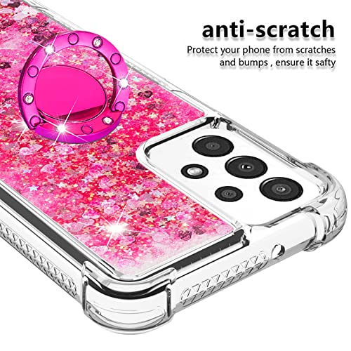 Cute Cover Compatible per Samsung Galaxy A13 4G Custodia Bellissima Glitter Bumper Custodie Della Porta Anelli Case Stelle Spessa Proteggere Trasparente Silicone Cover per Samsung Galaxy A13 4G-Rosa