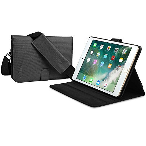 Custodia da trasporto per iPad con le migliori caratteristiche: un accessorio elettronico super caricato con funzionalità. Tracolla regolabile e rimovibile (usata in modalità ritratto e paesaggio) trasforma la custodia in una borsa da collo a mani libere, imbracatura, fondina. 2 cinghie - esterno (mantiene anche il coperchio chiuso) e interno per una presa sicura con una sola mano. Forte chiusura magnetica, supporto a 3 angolazioni/cavalletto per avere le mani libere, tasca porta carte di credito.