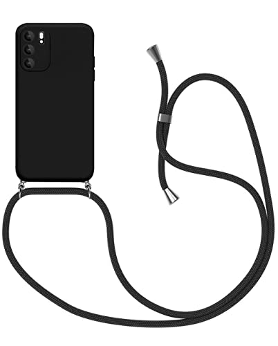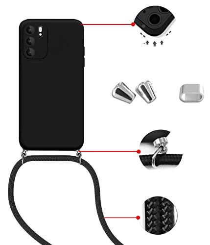 Cover per Oppo Reno 6 Pro 5G (6,55"), Corda Custodia in Silicone con Regolabile Cordino, Silicone Case Cordini Custodia Cellulare da Collo, Nero