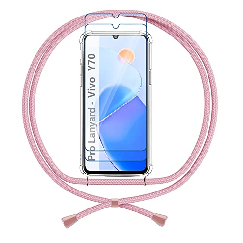 Cover Cordino Compatibile con Vivo Y70, Custodia Collana Proteggi Schermo Trasparente TPU Morbido Silicone Aria Cuscino Regolabile Antiurto Antiscivolo Protettiva Case, Rosa