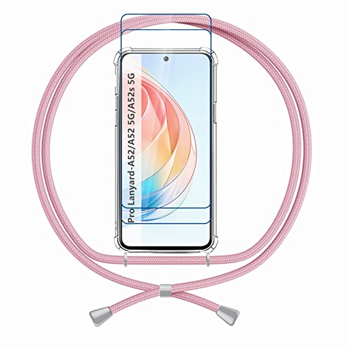 Cover Cordino Compatibile con Samsung Galaxy A52s 5G / A52 / A52 5G, Custodia Collana Vetro Temperato Trasparente TPU Morbido Silicone Aria Cuscino Regolabile Antiurto Case, RosaPink