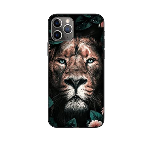 Cover Custodia compatibile con Apple iPhone 11 Pro Max Animali della Giungla Leone Foglie/Stampa anche sui lati/Telefono Rigido Snap on Antiscivolo Antigraffio Antiurto Protettivo Rigido