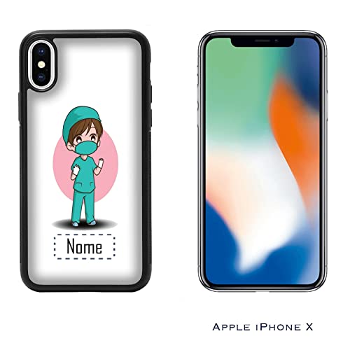 Cover Custodia compatibile con Apple iPhone X Lavoro Infermiere/Retro in vetro con gomma sui lati/TPU Antiscivolo Antigraffio Antiurto Protettivo Rigido Telefono Rigido Snap on