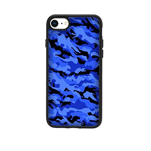 Cover Custodia Compatibile con Apple iPhone 7 Militare Mimetica Camouflage Military Army Nero Blu e Nero Mimetico/Retro in Vetro con Gomma sui Lati/TPU Antiscivolo AntiGraffio Antiurto Protettivo