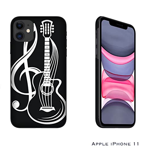 Cover Custodia compatibile con Apple iPhone 11 Musica chitarra con chiave di violino/Stampa anche sui lati/Telefono Rigido Snap on Antiscivolo Antigraffio Antiurto Protettivo Rigido