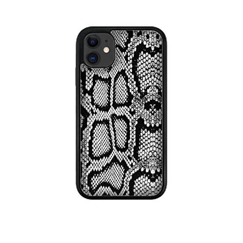 Cover Custodia Compatibile con Apple iPhone 11 Sfondo Pitonato Serpente GrigioNero/Retro in Vetro con Gomma sui Lati/TPU Antiscivolo AntiGraffio Antiurto Protettivo Rigido Telefono Rigido Snap on