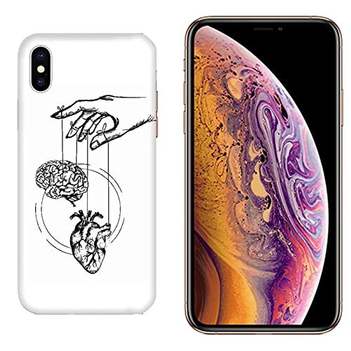 Cover Custodia Compatibile con Apple iPhone XS Max Tatuaggi Tattoo Mano Cuore Cervello/Stampa Anche sui Lati/Telefono Rigido Snap on Antiscivolo AntiGraffio Antiurto Protettivo Rigido