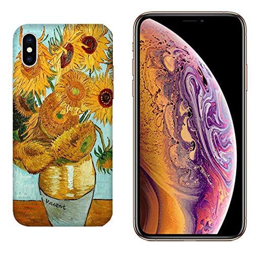 Cover Custodia compatibile con Apple iPhone XS Max Vincent Van Gogh Vaso di Girasoli/Stampa anche sui lati/Telefono Rigido Snap on Antiscivolo Antigraffio Antiurto Protettivo Rigido
