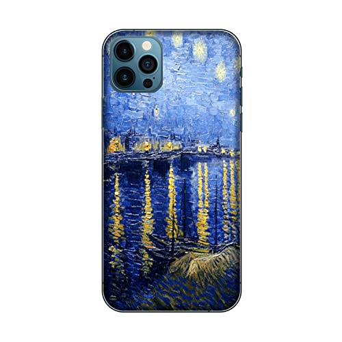 Cover Custodia compatibile con Apple iPhone 12 Vincent Van Gogh NOTTE STELLATA SUL RODANO/Gel di silicone morbido TPU/Telefono Hard Snap on Antiscivolo Antigraffio Antiurto Protettivo TPU
