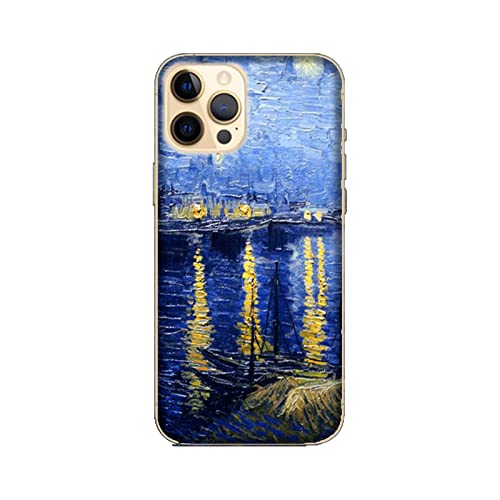 Cover Custodia compatibile con Apple iPhone 12 Pro Vincent Van Gogh NOTTE STELLATA SUL RODANO/Stampa anche sui lati/Telefono Rigido Snap on Antiscivolo Antigraffio Antiurto Protettivo Rigido