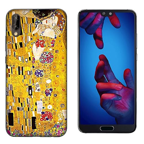 Cover Custodia compatibile con Huawei P20 Gustav Klimt IL BACIO. THE KISS/Stampa anche sui lati/Telefono Rigido Snap on Antiscivolo Antigraffio Antiurto Protettivo Rigido