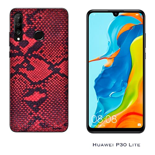 Cover Custodia compatibile con Huawei P30 Lite Sfondo Pitonato Serpente Rosso e Nero/Stampa anche sui lati/Telefono Rigido Snap on Antiscivolo Antigraffio Antiurto Protettivo Rigido