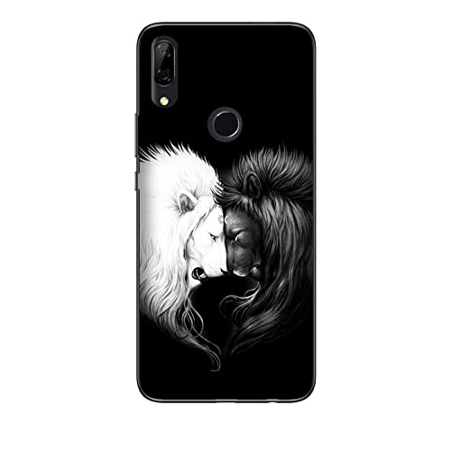 Cover Custodia compatibile con Huawei P Smart Z Animali della Giungla Leone bianco e nero cuore/Stampa anche sui lati/Telefono Rigido Snap on Antiscivolo Antigraffio Antiurto Protettivo Rigido