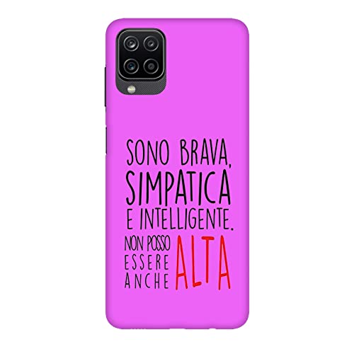 Cover Custodia compatibile con Samsung Galaxy A12 Frasi divertenti sono brava simpatica e intelligente non posso essere anche ALTA/Stampa anche sui lati/Telefono Rigido Snap on Antiscivolo Antigra