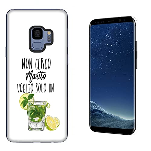 Cover Custodia Compatibile con Samsung Galaxy S9 (2 in 1) Frasi Divertenti Non Cerco Un Marito Voglio Un Mojito / 2in1 Doppia Protezione in Gomma e plastica/Stampa Anche sui Lati/Telefono Rigido S