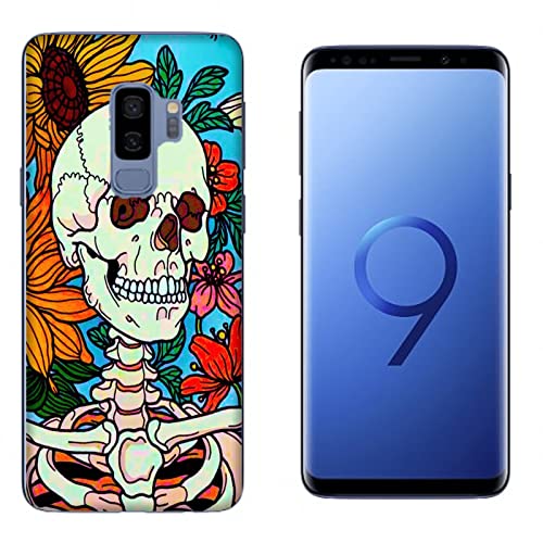 Cover Custodia Compatibile con Samsung Galaxy S9 Plus | S9+ Teschio Scheletro con Fiori Colorati Farfalla/Stampa Anche sui Lati/Telefono Rigido Snap on Antiscivolo AntiGraffio Antiurto Protettivo