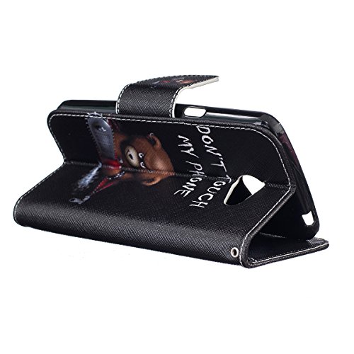 LG K5 Cover LG K5 Case LG K5 Custodia We Love Case 2 in 1 Elegante Borsa Design Particolari Colore Belle Marrone Brown Orso Bear (Don't Touch My Phone) Modello Custodia in Morbido Pelle PU Leather Cuoio Wallet Portafoglio Cordoncino Libro Flip Chiusura Magnetica con Supporto Stand e Porta Carte Integrati Protettiva Cover Antiurto Anti Polvere Case Caso per LG K5 + Stilo Penna